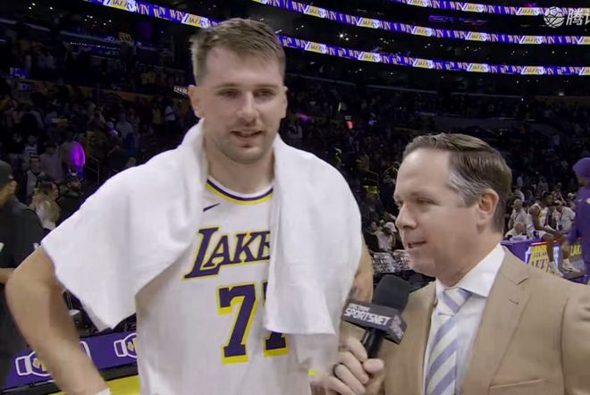 但是比賽不是看數(shù)據(jù),或者看Excel看表格能夠看出來(lái)的,你一定要看場(chǎng)上的表現(xiàn),這場(chǎng)球布朗尼就打出了一個(gè)非常精彩的18分鐘發(fā)揮,而且唯一的進(jìn)球也讓湖人主場(chǎng)的2萬(wàn)名觀眾為他歡呼沸騰。首先在第4節(jié)本來(lái),雙方的分差是110:114只差4分,此時(shí)湖人派出小陣容,東契奇、拉拉維亞、里夫斯,布朗尼和海斯,這是湖人專(zhuān)門(mén)祭出的一個(gè)超強(qiáng)小陣容。