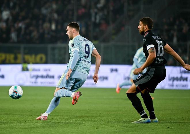 比賽剛剛開打第2分鐘,老將科斯蒂奇就用一粒閃擊破門,給新帥斯帕萊蒂送上大禮,左路插上后冷靜推射遠(yuǎn)角,幫助尤文圖斯早早就取得了1-0的夢幻開局,憑借此球科斯蒂奇也打破了自己長達(dá)958天的意甲聯(lián)賽進(jìn)球荒,第21分鐘弗拉霍維奇右路完成了一腳勢大力沉的抽射,但角度太正被克雷莫內(nèi)塞門將撲出。