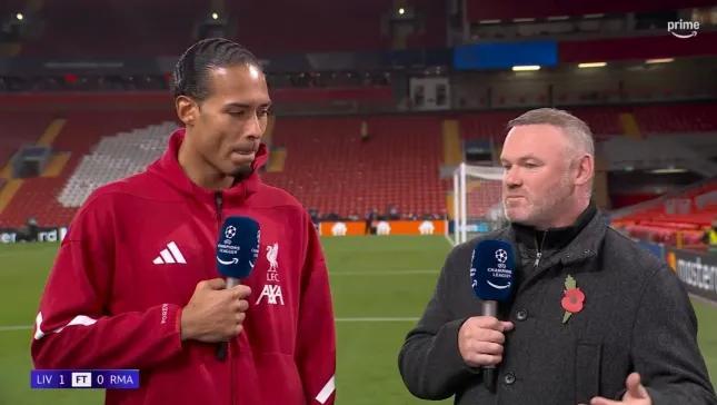 在戰(zhàn)勝皇家馬德里后,范戴克出來接受亞馬遜Prime評論員的采訪,而魯尼正與羅比-福勒、沃爾科特和斯圖里奇一起坐在解說席上。