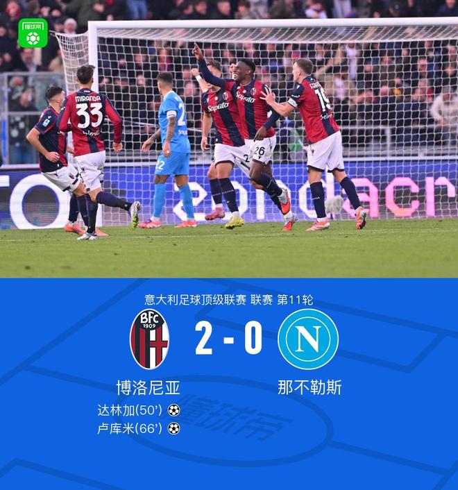 博洛尼亞2-0那不勒斯,達(dá)林加破僵,盧庫(kù)米鎖定勝局